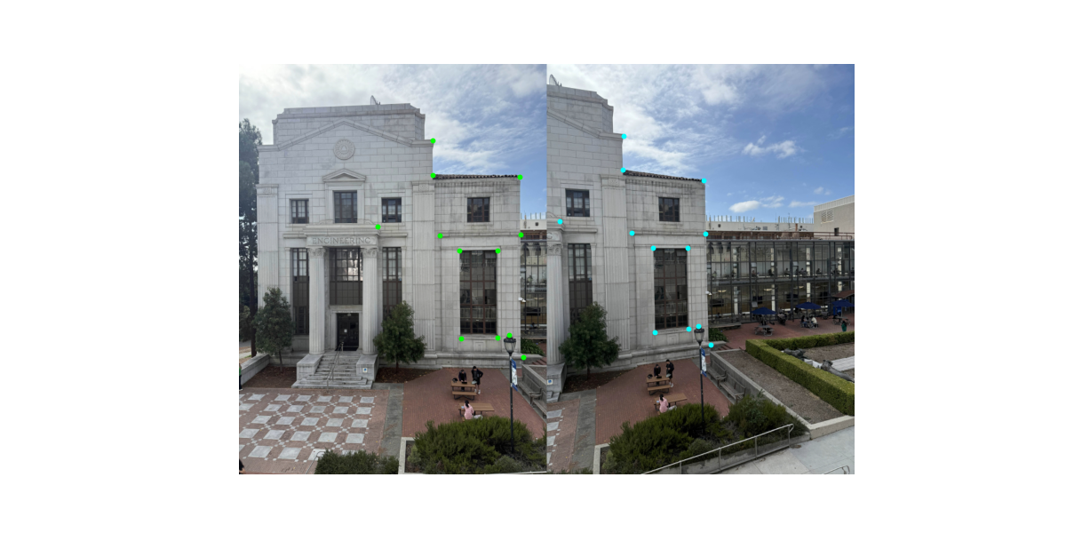 The goal of this project is to compute homographies, perform image warping, and blend multiple images into seamless mosaics. This part focuses on implementing warping, resampling, and compositing entirely from scratch. Then, We get to automated feature detection, as well as feature matching, ANMS, and RANSAC.